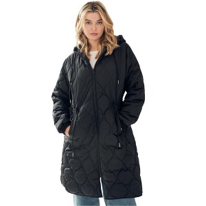 ellos Long Quilted Jacket With Drawstring Waist - 1 of 4