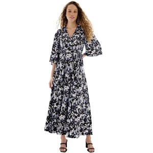• A: This maxi dress has three-quarter bell sleeves for a fashionable look.