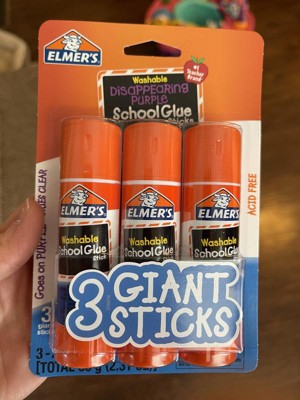 Elmer's 3pk Washable School Glue Sticks - Disappearing Purple: Large, Jumbo, White, Art, Stationery, Office Supplies