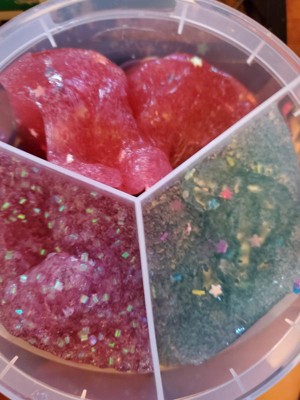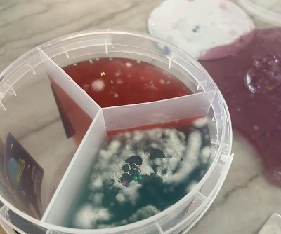 - Slime bucket includes 3 kinds of scented slime (blue raspberry, strawberry, and grape), separated by dividers