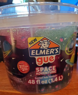 Chart a course to a galaxy of fun with the Elmer’s Gue Space Adventure Slime Bucket! Elmer’s Gue is a premade slime that comes ready to play straight out of the bucket! This 3-lb. bucket contains 3 types of scented slime, each with their own unique fragrance (blue raspberry, strawberry, and grape) and separated by dividers. It also contains 3 sets of add-ins, including iridescent bingsu beads, cosmic discs, and multi-color stars, to blast your play into a whole new universe. Plus, the galactic size of the slime kit means it’s great for slime parties or sharing with fellow space explorers. Stretch it, squish it, twist it; explore all the fun ways to play with Elmer’s Gue!