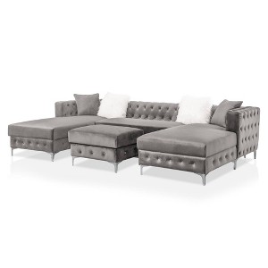 HOMES: Inside + Out Elmhurst U Shaped Deep Button Tufted Sectional with Ottoman Gray : Modular, Transitional Style Sofa