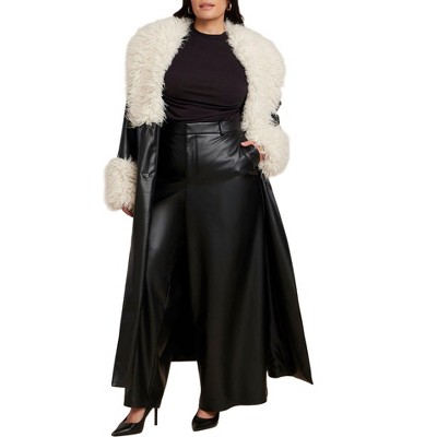 100% PU 100% Viscose Oversized fit Fully lined Front zipper, convertible collar Dropped shoulder, sleeve with cinched cuff Hits at the high hip 23 1/2" body length from highest point of shoulder on size 18 Non-stretch faux leather Hand wash cold with like colors. Spot clean as needed. Do not dry clean. Do not tumble dry. Do not twist or wring. Lay flat to dry. Do not iron..
