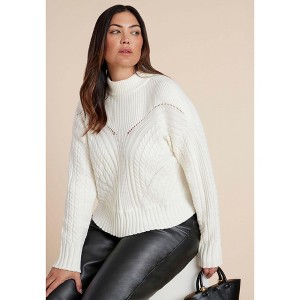 Wrap yourself in supreme softness with this oversized cableknit funnelneck sweater—a modern take on cozy comfort with timeless texture & subtle volume..