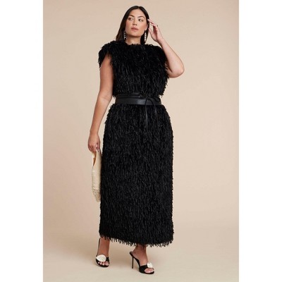 ELOQUII Feathery Faux Fur Maxi Dress