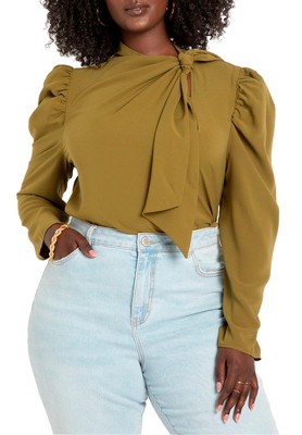 ELOQUII Draped Neck Satin Blouse