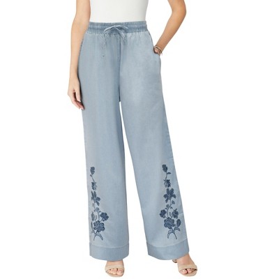 Perfect for when warm weather strikes, drawstring-waist pants trimmed with a charming embroidery are the easy answer..
