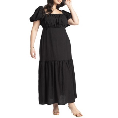 ELOQUII Pleated Ruffle Neckline Midi Dress - 14, Black Onyx