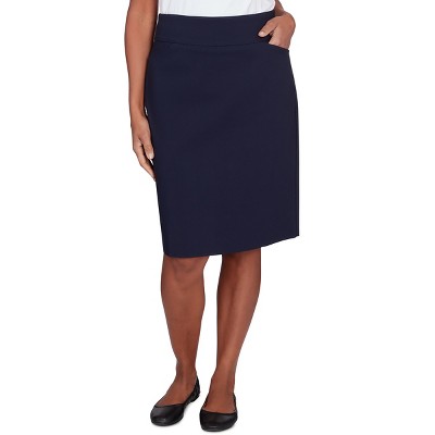 100% Polyester Tailored fit Fully lined Back zipper, elastic at back waist only Slit at back hem for walking ease Hits at the calf 35" back skirt length Non-stretch woven tweed with sequin Turn garment inside out, machine wash cold gentle cycle with like colors. Only non-chlorine bleach when needed. Do not tumble dry. Lay flat to dry. Cool iron as needed..