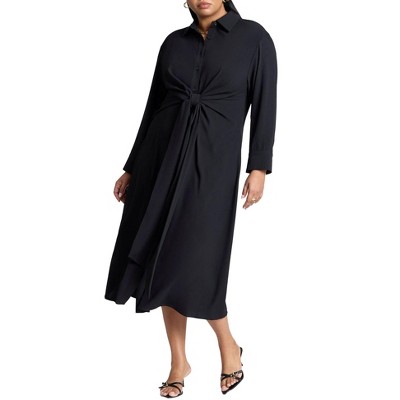 ELOQUII Velvet Tie Waist Gown - 14, Black Onyx