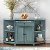 Vintage meets function with the Elora Buffet from Buylateral. Display your favorite decorative items or cookbooks on the open shelves. This buffet features a top drawer perfect for storing your cutlery and dining essentials with a double door cabinet for dinnerware and more. Available in antique blue, the Elora buffet is sure to complement your dining room or kitchen.