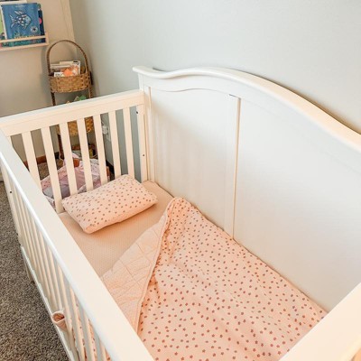 Showcase Your Little One in StyleStep into a nursery that feels peaceful and elegant, while wrapping your baby in the highest quality bedding. Modern and fresh, this stylish, crib bedding set provides baby girl with a welcoming sleep setting. With a modern floral design, and pin dot print designed in a contemporary pink color palette and stunning trim details, Ely�s & Co. premium bedding ensemble creates the perfect sleep environment for baby girl. This charming and exquisite bedding set is also a perfect fit for toddler beds.Superior Quality SoftnessOur superior quality crib set is more than just an interior design dream. Cozy and peaceful, your baby will rest soundly in Ely�s & Co.�s signature, buttery soft, 100% high quality Jersey Knit Cotton. This baby crib bedding set includes a crib sheet featuring a classic, minimalist pin dot print, an inviting and feminine floral pillowcase, a soft pink percale cotton crib skirt, and a double-sided blanket in modern, fashion-forward floral and pin dot prints. Our reversible blanket is incredibly cuddly and quilted for an extra layer of warmth and comfort. You will love how sharp the contrasting, mauve pink trim on our blanket and pillowcase look in your modern nursery. Not to mention the set�s pillowcase is envelope style for a clean and neat appearance. There was absolutely no attention to detail spared when we designed this stunning crib set. A Splendid Sleep SpaceEly�s & Co. specialty crib set supplies a cozy napping and resting space for your baby, who spends most of the day sleeping! And at the end of a long, fulfilling day with your little one, bring your baby to rest once again in this inviting, peaceful space. Knowing your baby is slumbering in the absolute best gives you the security you need to gear up for another beautiful day!