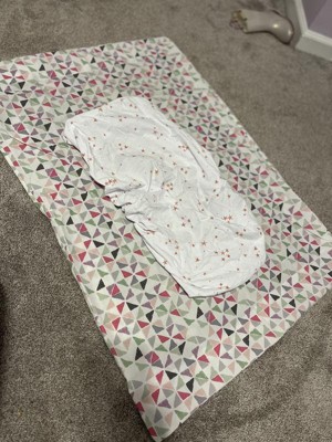Soft material right out of the box. It has that feel that it will only get softer as you wash it. I’m not going to take stats away for me oversight, but make sure you pay attention to the measurements! I didn’t realize how small the bassinet size was and hoped to use it in a pack and play. You can see the comparison how wrong I was, which is too bad because it’s much cozier than what we have already.