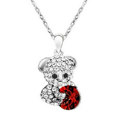 • The necklace has a glass bead with crystals around the edges and a crystal cap