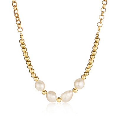 ELYA Women's Crystal Halo White Shell Bead Steel Tassel Necklace - 26"