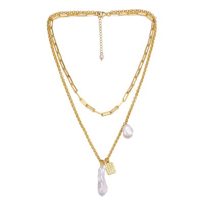 ELYA Women's Polished Freshwater Pearl Stainless Steel Necklace- 16"Wear this freshwater pearl necklace and add a touch of sophistication to any outfit. The necklace has three pearl strands braided throughout the necklace, giving the piece an impactful wow-factor.The pearl strands are attached to cable chain strands. The chain is crafted with durable stainless steel. The piece is complete with a polished finish and will make any look a statement look.The necklace has a wearable length of 16 inches and includes a 2 inch extension to fit comfortably around your neck. The cable chain has a width of 1.5 millimeters and stays secure with a lobster clasp. The necklace has a total count of 225 pearls measuring 4-5 millimeters wide. The irregular shaped cultured pearls have a grade B rating.