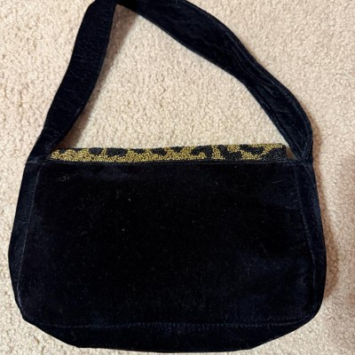[This review was collected as part of a promotion.] This bag is cute but overall I’m not impressed for the price. I thought the outside beading detail of the leopard print was really well done and it looks great. The bag itself is velvet and I found that so much was clinging to the fabric. One other thing I didn’t like is that there are no inside pockets for a card or cash. the magnet closure is great