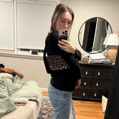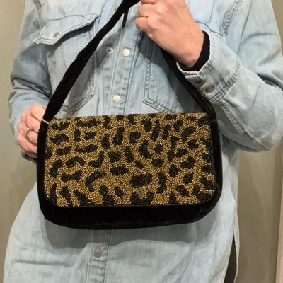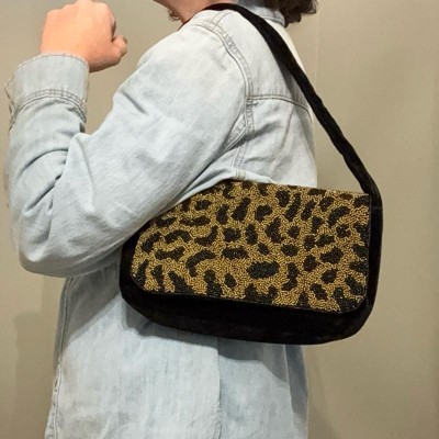 Lend a touch of wild style to your looks with the Embellished Leopard Print Flap Shoulder Bag from A New Day™. This unstructured shoulder bag showcase velvet fabric with an embellished leopard pattern for a textured look you'll love, while a spacious interior neatly stores your phone or other small essentials. Designed with a flap closure, this flap shoulder bag allows easy carrying with an adjustable single strap.