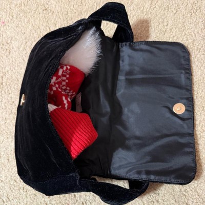 [This review was collected as part of a promotion.] This bag is seriously so cute! The inside of it actually is pretty large and you can fit quite a bit in there. I definitely will be using this to dress up outfits during this winter season. The only thing I don’t love is that the strap is a little to short for me so I can’t carry on my shoulder. Otherwise it’s adorable and perfect.