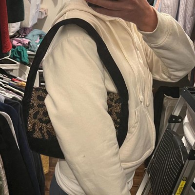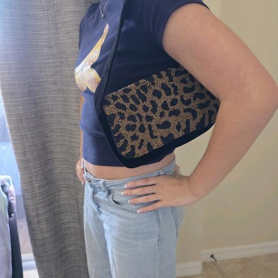 [This review was collected as part of a promotion.] I bought this leopard print purse for my sister and she really loved it. It brings back 80’s vibes. The strap is medium thickness making it easy to rest on your shoulder. The embellishments are very pretty. The inside is a satin material and holds a good amount of personal belongings. It rests right under your armpit and snaps with a good strength magnet.