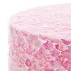 Celebrate shimmering color and uptown glamour with this Emberlyn Round Accent Table. Emberlyns flowing, organic fish scale pattern is beautifully enhanced by its tonal dark pink hues, making Emberlyn a captivating centerpiece in any artistic or eclectic decor.