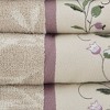 Add a touch of elegance to your bathroom decor with our Madison Park Serene Embroidered Cotton Jacquard 6 Piece Towel Set. These cotton towels feature a jacquard leaf pattern with a floral embroidered hem, and purple contrast piping details to create a beautiful and sophisticated look. This cotton towel set is also OEKO-TEX certified, meaning it does not contain any harmful substances or chemicals, ensuring quality comfort and wellness. Highly absorbent and incredibly soft from its medium weight terry loop construction, this towel set is also machine washable for easy care for the perfect addition to any bathroom. Set includes: 2 standard 27x52" bath towels, 2 standard 16x28" hand towels, and 2 standard 12x18" fingertip towels.Product DetailsSee below2 Bath Towels:27"W x 52"L (2)2 Hand Towels:16"W x 28"L (2)2 Fingertip Towels:12"W x 18"L (2)Material550gsm cotton terry
