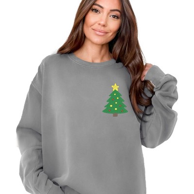 Product Name: Embroidered Truck Christmas Tree - Women's Garment Dyed Graphic Sweatshirt