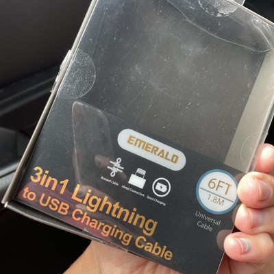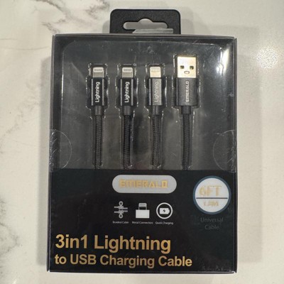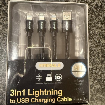 Product Name: Emerald 6ft 3-in-1 Braided USB-A to Triple Lightning, Charging & Data Syncing Cable - Black