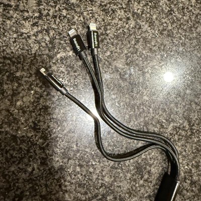 [This review was collected as part of a promotion.] I’ve been looking forever for a cord like this. My kids have iPads and I’m constantly looking for their chargers. We have a designated cupboard in our house with a big docking station to plug in the chargers where all the electronics go. I had like 8 plugs plugged in one time and it just gets so tangled. This 3 in 1 lightning cable has cleared up 3 cords for me, and relieved so many tangles! I can now have up to 3 iPads charging at once with one cord. It’s 6 feet long so if I bring it in the car it reaches all the way to the back where my son sits. The cord doesn’t feel flimsy or cheap either. Very affordable. I received an incentive to write this review.