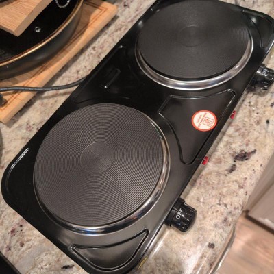 [This review was collected as part of a promotion.] This electric dual burner stove is my favorite thing in my RV. It is compact, lightweight, and heats up pretty fast. The two burners have independent control and red indicator lights so you know when they’re good to go. It is very affordable and worth the price, it had a smell to it when I first turned it on. Clean up is a breeze, easy to store and put away. All in all, it’s a great product. I received an incentive to write this review.