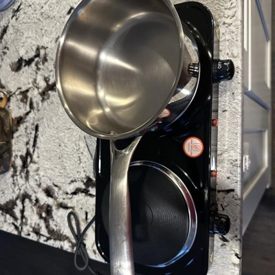 [This review was collected as part of a promotion.] This is a cool 2 stovetop portable cooking top. It’s great for outdoor use, camping, RVing or barbecues. I used mine as a live pasta station at a party recently. This is not a coiled stovetop so the cookware stays well balanced on the stovetop, the cord is a bit short so you should make sure you have access to an outlet. This does get hot so don’t use for long period of times. I received an incentive to write this review.