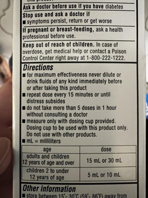 For maximum effectiveness never dilute or drink fluids of any kind immediately before or after taking this product. Repeat dose every 15 minutes or until distress subsides. Do not take more than 5 doses in 1 hour without consulting a doctor. Measure only with dosing cup provided. Dosing cup to be used with this product only. Do not use with other products. mL = milliliters.Adults and Children 12 Years of Age and Over