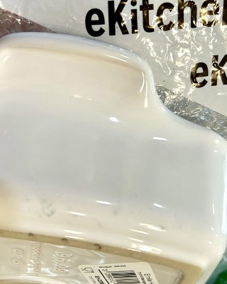 Again, an obvious Emile Henry 2nd Quality Item. Please see (3) images w/glazed effects w/black smudges (side) & black dot (top inside) on white glazing. A long time Emile Henry customer & so very disappointing. Will be returning.