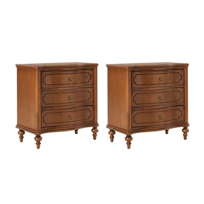 The transitional-style end table features an exquisite design, adorned with intricate fretwork on the drawer fronts. The generously scaled burnished bronze drawer pulls add a vintage charm, enhancing the overall aesthetic. Functionality meets convenience with built-in power outlets, including two USB interfaces and two three-pronged outlets discreetly integrated into the end table. Charging your devices has never been more convenient. The end table stands on solid wood legs with adjustable feet, providing both stability and natural warmth to your living room decor. Opening the drawers reveals ample storage space for daily essentials, neatly organized within the smoothly gliding side rails. With traditional design and premium materials, elevate your home office with this stylish 3-drawer end table.