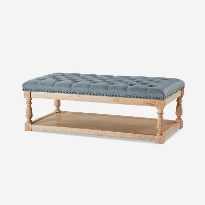 Emilio Modern 55.25 Wide Upholstered Low Back Bench with Sturdy Golden Metal Tapered Leg| ART OF LIVING DESIGNS-BLUE
