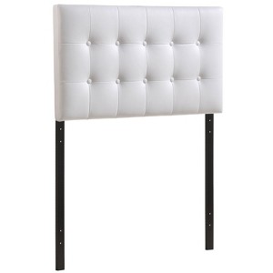Add elegance to your bedroom with the Emily tufted button headboard. Designed with just the right amount of grace, Emily is made from fiberboard, plywood, and smooth vinyl upholstering for a construction that is both lightweight and long-lasting. Perfect for contemporary and modern bedrooms, sleep soundly with a piece that imparts a sense of tranquility amidst an impressive backdrop of style. Fits twin size beds.
