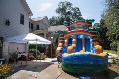 This was a last minute purchase for a bouncy slide party we were having. We realized where we were planning on putting the slide would have a lot of direct sun. We wanted some shade for our guests so bought this on impulse. It arrived quickly. It was very easy to set up...I think we had it up within 5 minutes. My husband helped me but I think the second time, I could to it on my own. I did read reviews and remembered one person who had advised to attach the canopy before fully extending as it was tight once extended. We followed that advice and didn't have any problems. Taking it down took about the same time. We were able to fit it back in the storage bag without issues. It provided great shade for our party and was plenty big for a table and four chairs underneath. I've included the photos so others can see how much shade it provided. It is fairly lightweight, one person can easily transport it. We opted for the model with the nice wheeled carrying case. I think this will be really handy to transport it places, especially with kids or other gear in tow. I am already thinking of the places we can bring it with us....
