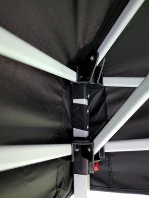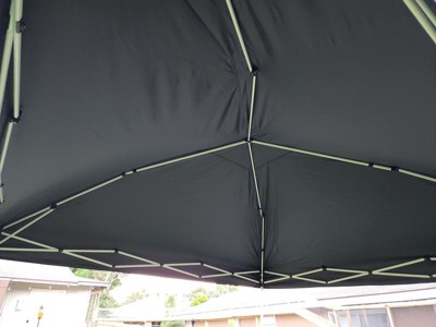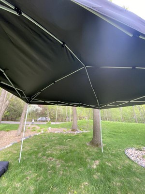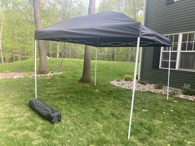 [This review was collected as part of a promotion.] Overall these is a decent pop up canopy. I like that it comes with sandbags plus tie downs and it was very quick and easy to set up and take down. I also appreciated the wheels on the carry bag. One feature I thought was pretty neat is that the four corners have velcro wrapped around the poles - to attach the fabric canopy on the corners you simply lay it on and it sticks - no annoying ties to deal with! What I did not like was that one of the velcro loops for the roof supports was simply missing so we were only able to attach the canopy to 3 roof supports rather than 4. There are of course additional velcro attachments all around the edges so I think overall it's probably fine. Some of the roof supports also don't stay popped out straight and seem like they would easily buckle. I don't think this would stand up to a lot of abuse or high winds, but it's certainly sufficient if you only need one occasionally!