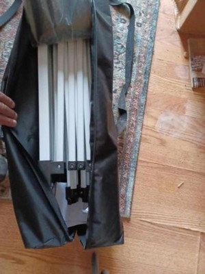 [This review was collected as part of a promotion.] This honestly was the quickest pop up tent that I've ever experienced the construction was amazing Alexa or sturdy the slander leg definitely make a difference on the holding up of the tent no flying way of A-tent no fear of a collapsing everything worked out just fine with this tent. Love the convenience of the carryback love the convenience of just putting it right back down taking no time at all so easy to do great size to fit everything that I needed to fit in there you will not be disappointed in this 10th no matter what kind of event that you're gonna have this will be a perfect way to protect you from the sun or rain or anything