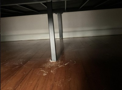 The design does not support the weight. All legs within the frame besides the rectangle shaped ends are bent and I've since added footpads but it will not undo the damage the faulty weak steel legs have done by bending inward or outward and scratching my hardwood floor. My husband and I are constantly straightening the legs before bed and tightening the screws throughout the month There are much better options out there- do not purchase you're just throwing your money away.