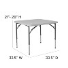 It's game time when you pull this adjustable folding table out. This square plastic folding table is the perfect game table to seat 4 people for card and board games. This compact table can serve multiple uses in the hospitality industry, business offices and in the home to seat extra people or hold plates, napkins and cups during gatherings. Dine outdoors on the deck to enjoy the summer breeze, this table sets up in no time and can be adjusted to various seat heights. This mini table travels well for people who live on the road in vans, campers and RVs. When you're ready to put away the legs lock underneath the top to be stored away. Enjoy this portable table inside or outside but always store indoors to protect the frame from extreme moisture. Additional Features: Frame adjusts 8" to accommodate various seat heights, Gray Powder Coated Locking Legs with protective floor caps, Ships fully assembled