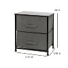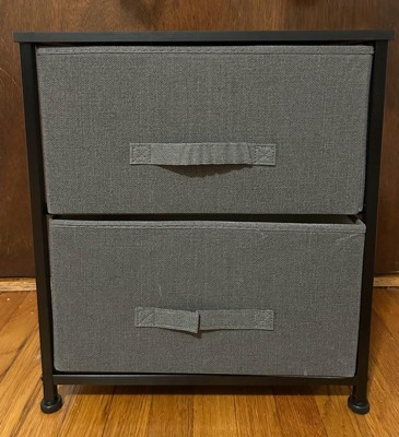 Get much needed storage at an economical price that works anywhere in your living space with this 2 drawer organizer. Whether you need a place to display family photos and hold remote controls, store washcloths, or as toy storage this 2 bin organizer is a perfect solution. Use this 2 drawer storage table as a nightstand to hold your cell phone, glasses, or nighttime glass of water. Storage doesn't have to be bulky to be strong. Metal screw construction securely joins the powder coated cast iron frame of this fabric organizer together. The durable engineered wood top provides a hard surface to set books, lamps, or a vase of fresh flowers and holds up to 40 lbs. static weight capacity. Non-Woven fiber drawers not only look great but are fade and stain resistant to help this dresser with drawers retain its great looks. Quick and easy assembly can be achieved in 10 minutes or less with the step-by-step illustrated instructions or online PDF. Plastic adjustable floor glides protect your hard flooring surfaces and provide a stable platform on uneven flooring surfaces. Quickly remove spills with a clean damp cloth. Use this small storage drawer unit in or out of your closet for extra organization that goes above and beyond plain plastic bins