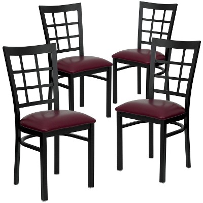 Emma and Oliver 2 Pack Black Coffee Back Metal Restaurant Chair - Burgundy Vinyl Foam Padded Seat