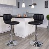 Product Name: Emma and Oliver 2 Pack Black Vinyl Adjustable Height Barstool w/ Vertical Stitch Back & Chrome Base