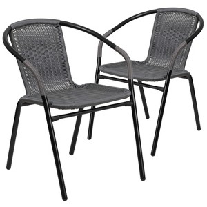 Emma and Oliver 2 Pack Gray Rattan Indoor-Outdoor Restaurant Stack Chair with Curved Back