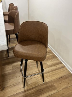 Commercial furniture needs to be both durable and low maintenance so metal barstools are a popular choice for furnishing restaurants, pool halls, lounges, bars and other high traffic establishments. This stool is easy to clean, which is an important aspect when it comes to a business. Add seating to your home bar or furnish the bar in your hotel with these durable upholstered stools. The contoured bucket seat envelopes the user in comfort. The tubular footrest not only supports your feet, but acts as additional reinforcement to help secure the legs. The swivel floor glides help protect your floors and ensure smooth gliding. Use this bar height stool in your kitchen, dining room or home bar and give your decor a fresh look.