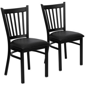 Product Name: Emma and Oliver 2 Pack Black Vertical Back Metal Restaurant Chair - Black Vinyl Seat