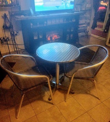 [This review was collected as part of a promotion.] I received this product for free in return for my honest review. The chairs arrived assembled. The table was very easy to put together. It's the perfect size for my bar area. I like that it's indoor/ outdoor friendly and light-mod weight, making it easy to move it myself. The asking price isn't bad. I might have to buy a second one 🤔