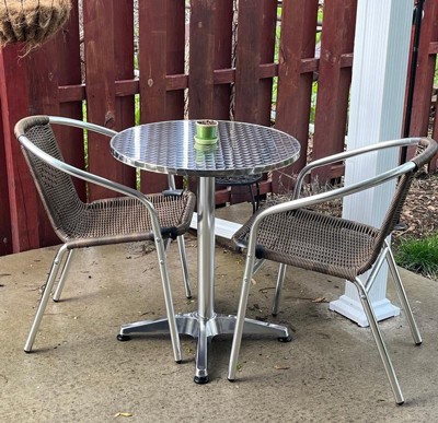 Product Name: Emma and Oliver 23.5" Round Aluminum Table Set-2 Dark Brown Rattan Chairs