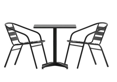 Product Name: Emma and Oliver 23.5'' Black Square Aluminum Indoor-Outdoor Table Set with 2 Black Slat Back Chairs